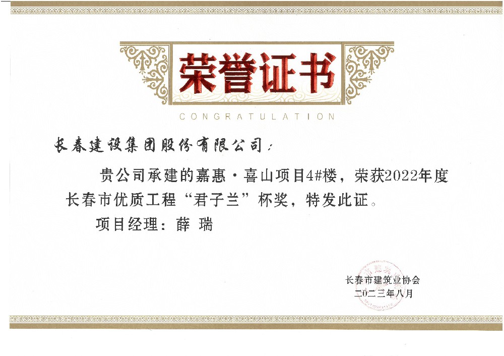嘉惠喜山4#楼2023年市优质工程...