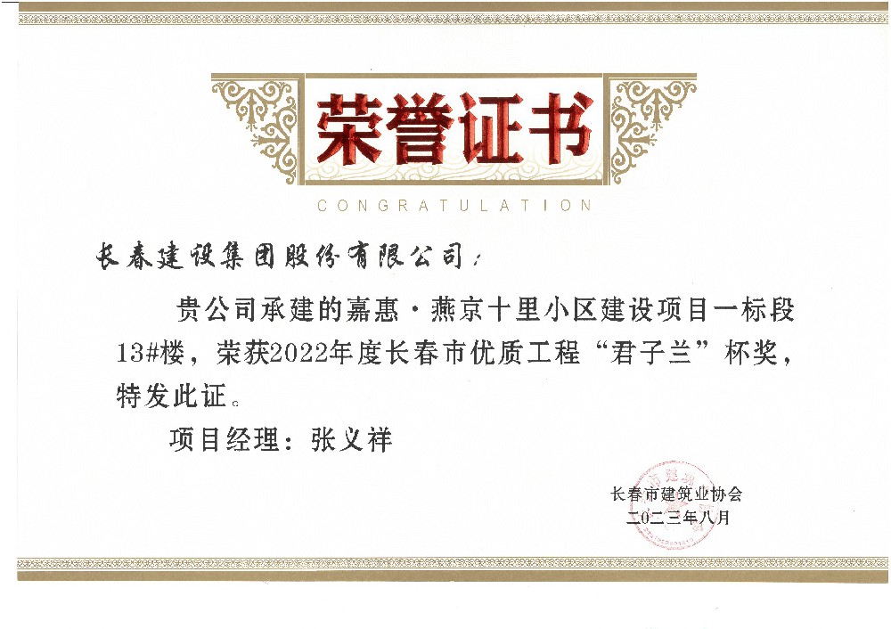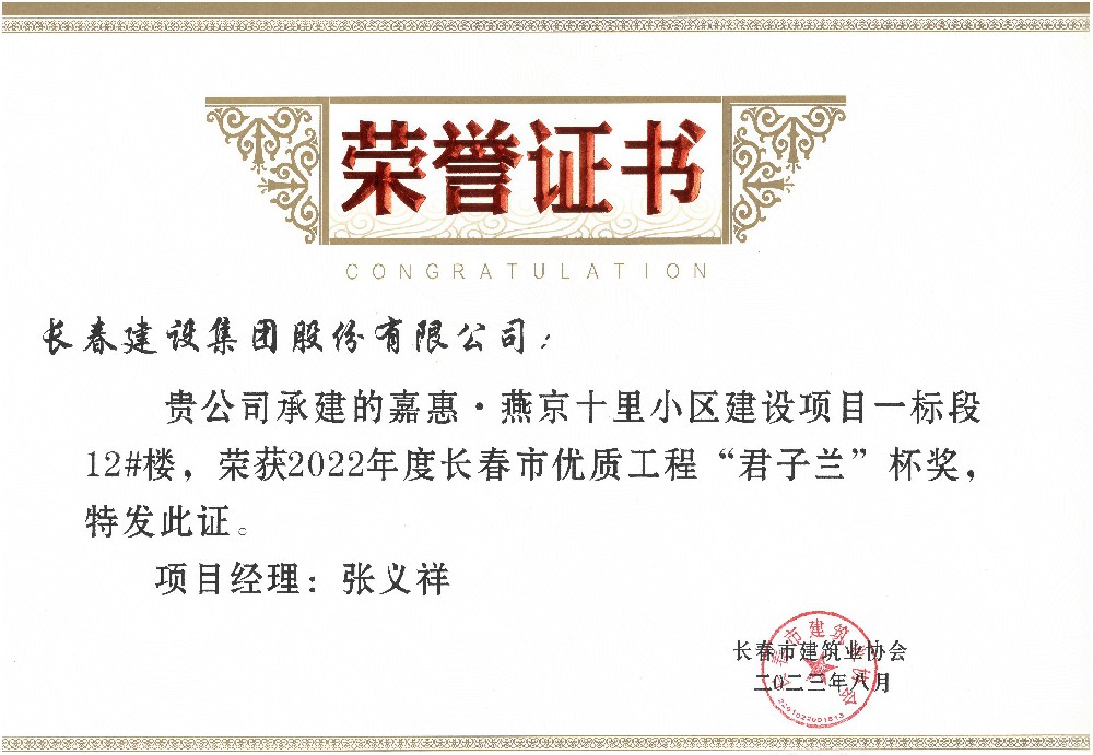 嘉惠燕京十里12#楼2023年度市优质工程...