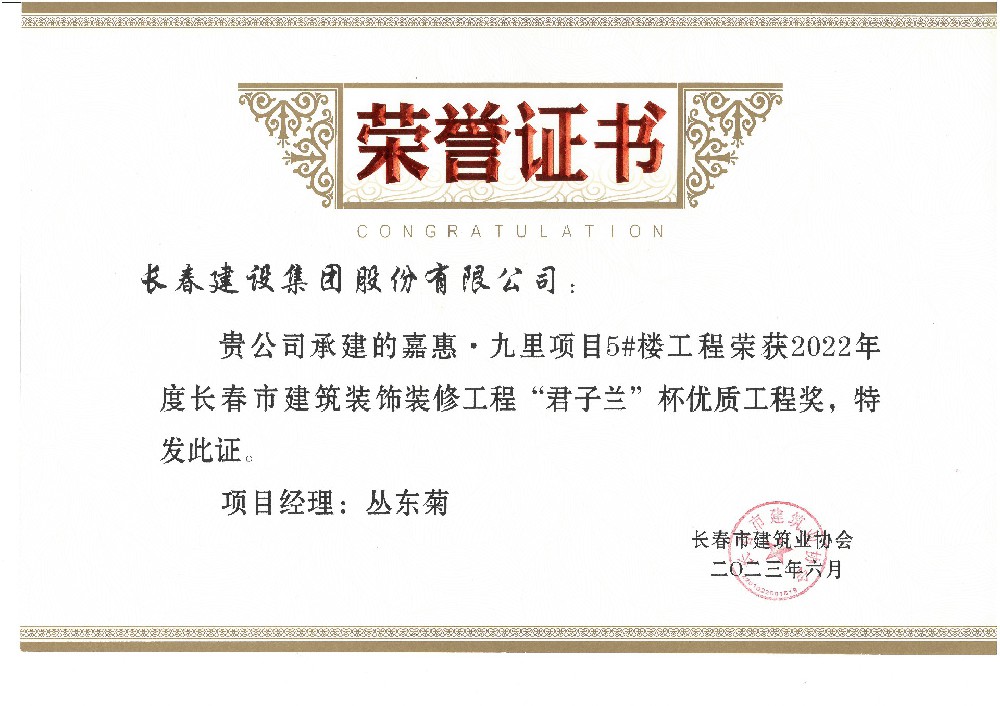 嘉惠九里5#楼2023年度市优质装饰工程...