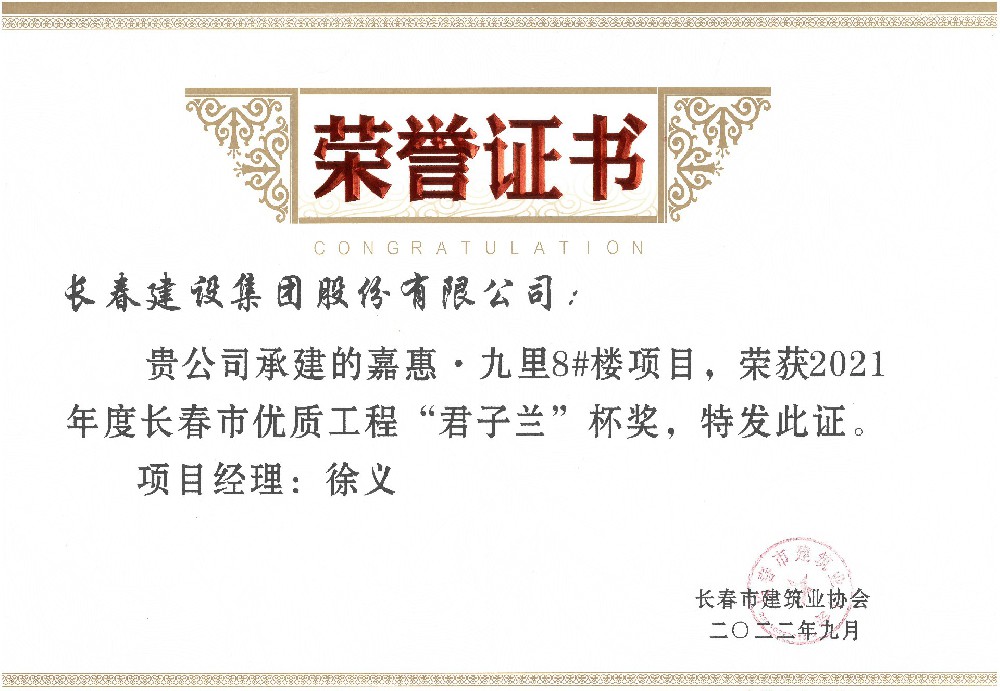 嘉惠九里8#楼2022年度市优质工程...