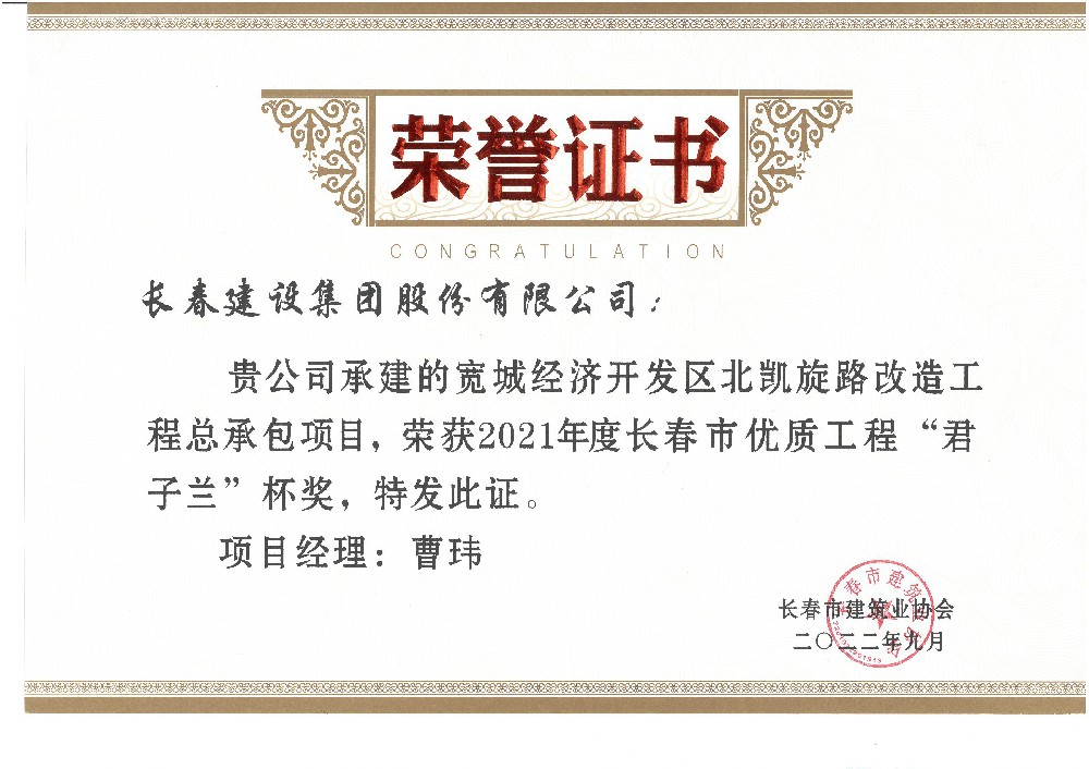 北凯旋路改造工程2022年市优质工程...