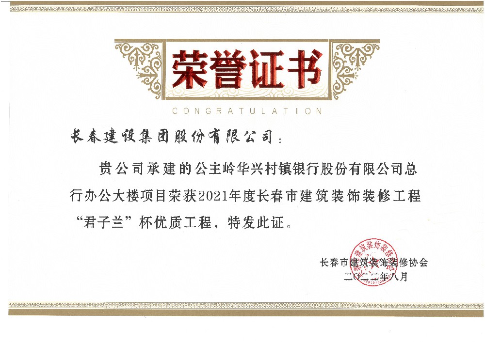 公主岭华兴银行2022年度市优质装饰工程...