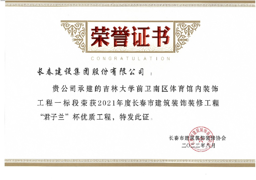 吉林大学院体育馆一标段2022年市优质装饰工程...