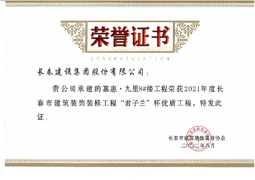 嘉惠九里8#楼2022年度市优质装饰工程...